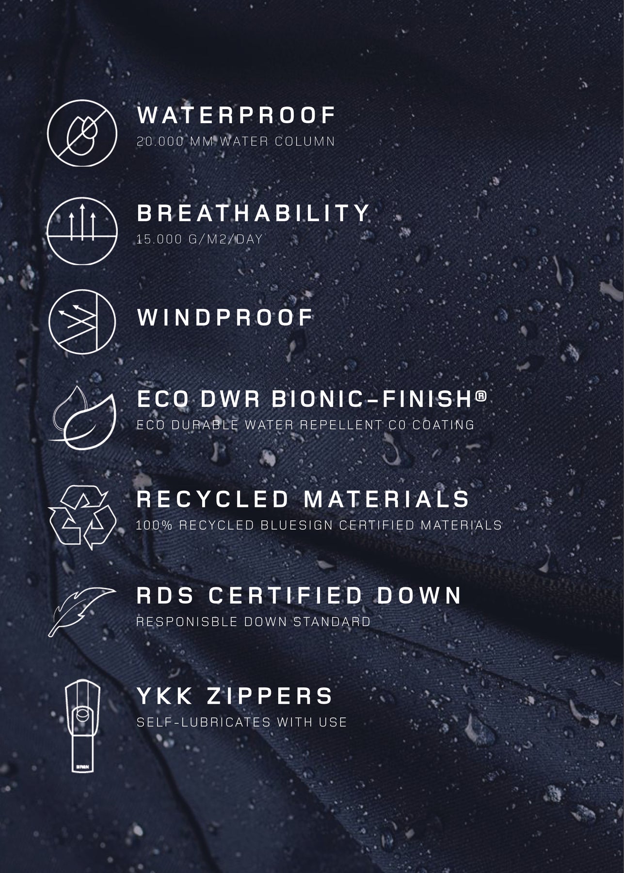The coat comes with a 20.000 mm water column, comfortable hood and reflective details.